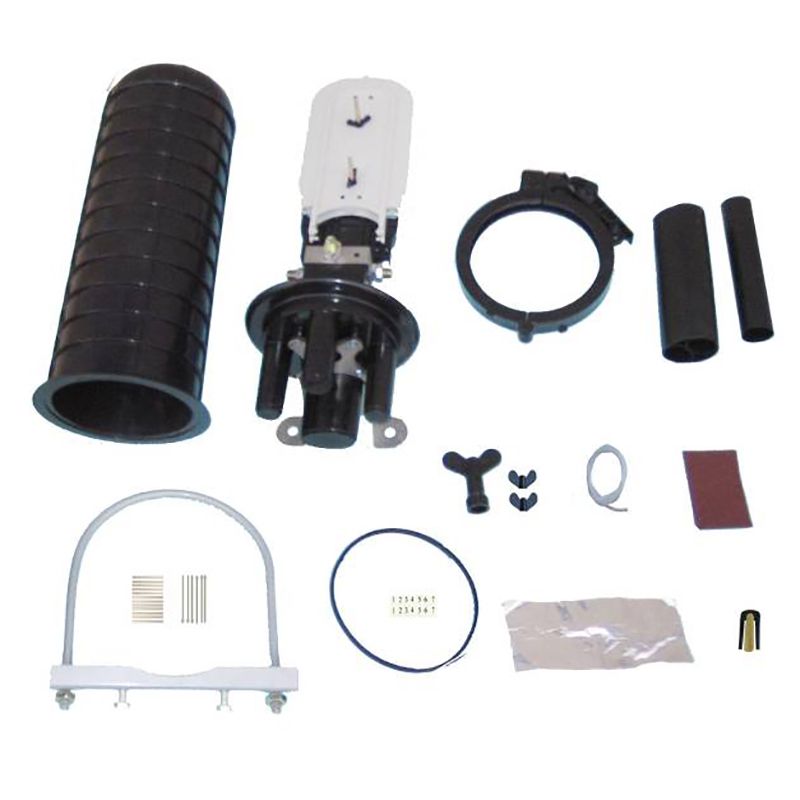 The WT-TJ-M3RS Dome Fiber Optic Splice Closure is used in aerial, wall-mounting applications, for the straight-through and branching splice of the fiber cable. The closure has four entrance ports on the end (three round ports and one oval port). The shell of the product is made from ABS. The shell and the base are sealed by pressing the silicone rubber with clamp allocated. The entry ports are sealed by heat-shrinkable tube. The closures can be opened again after be sealed, reused again without changing the sealing material.
